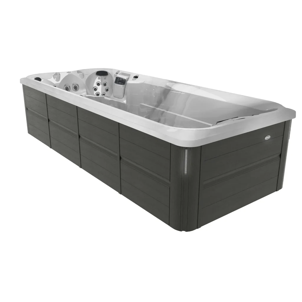 A Jacuzzi® PowerPro™ Swim Spa kollekció a vízi fitness és pihenés csúcsa. A Swim PowerPro® Jet rendszer erőteljes, mégis egyenletes vízáramlást biztosít, tökéletes helyben úszáshoz vagy ellenállásos edzéshez. A tágas kialakítás és a kényelmes hidromasszázs ülések pedig garantálják a teljes regenerálódást és kikapcsolódást egész évben.